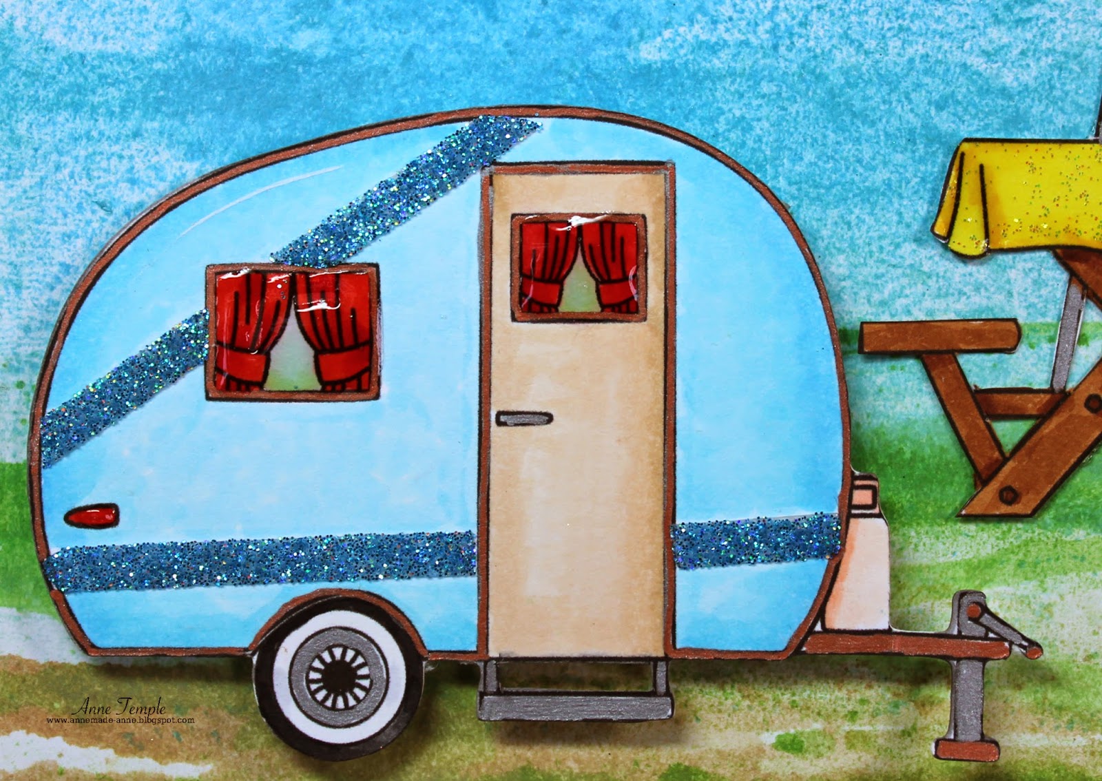 Anne, this card is amazing. So many fun details and techniques. Reminds me of the old days when I loved to camp with my family and didn't mind the heat or bugs! Love how you did the trailer windows and your coloring on that truck is amazing! Well done. Hugz!